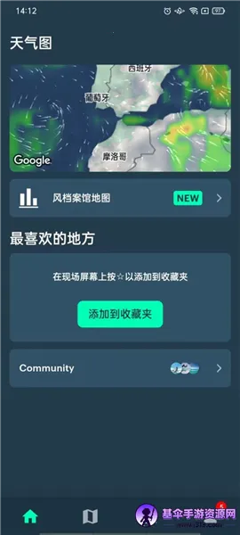 2. 展示直观便捷:采用交互式风场地图,直观展示风向动态变化。支持地图定位或地名搜索,还能将常用点位添加收藏夹一键访问。