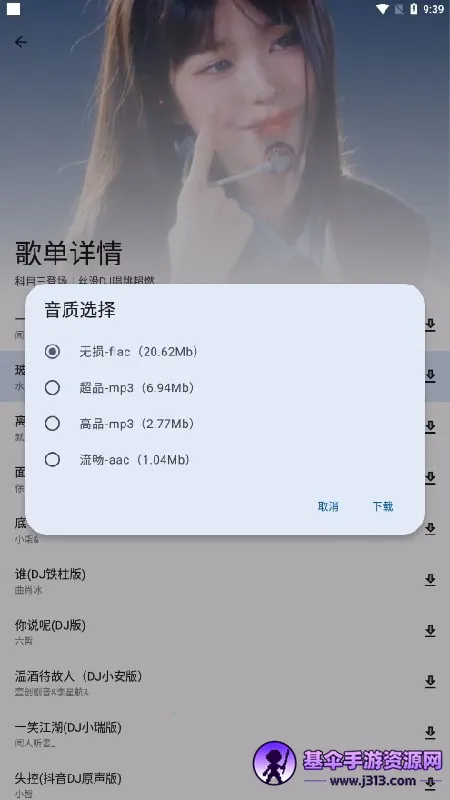 4、在弹出窗口选择音乐品质,点击下载