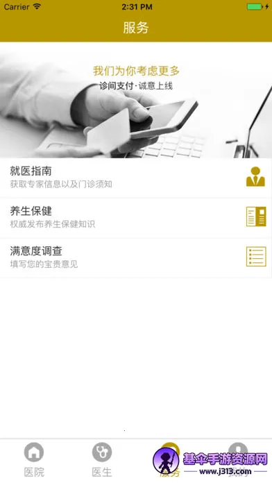 扬州市中医院软件超实用!它能解决你看病就医时的诸多困扰。你想知道扬州市中医院是几级医院,其实用这款软件就能轻松了解相关信息啦。软件功能强大,预约挂号超方便,能挑选所需门诊提前预约医生,简化就医流程,不用在医院大厅长时间排队,到院直接就医。挂号手续费和医院大厅相同。软件内医生介绍详细,助你加深了解。亮点也不少,个人诊断数据汇总方便查看,预约服务有详细板块可直接用,登录需建病历档案卡存病情信息。特色更是贴心,界面清爽无弹窗,还汇总健康小知识助你养成好习惯,支持住院预付款服务。付费记录可查,体检报告电子版推送,超便捷!有了它,就医不再繁琐。