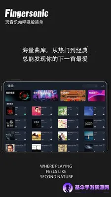 Fingersonic App是Fingersonic口袋乐器官方配套应用,能随时随地学音乐。有海量曲库、AI灯光跟弹等功能,支持USB蓝牙双MIDI,新手友好,界面清爽,与口袋乐器构成随身音乐生态。