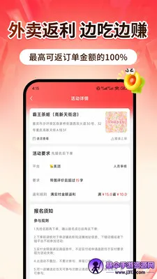 2. 外卖返利能赚钱:下单后可获丰厚返利,返利最高可达订单金额100%,每笔返利清晰记录,随时可提现,边吃边赚超划算。