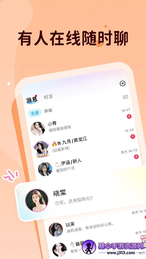 抖你是一款超有趣的语音聊天交友APP,能满足你多样的社交需求。它有多种语音房玩法,像连麦互动、多人聊天K歌团战等,氛围热闹不尴尬。特色功能众多,实时语音互动,多人语音聊天室随时开聊;内置多种玩法,边玩边聊超有节奏;在线消息随时回,交流顺畅有回应;还有炫酷特效与身份展示,增强互动体验。它还是智能社交工具,能把微信、QQ等多平台账号整合成电子名片,轻松交换信息。在社交场合,能快速帮你认识新朋友。比如商务洽谈时,一键交换名片,后续跟进轻松。注册完善资料后创建电子名片,可整理数字名片夹,还能多平台分享。有了抖你,社交变得高效又有趣,轻松解决社交难题。