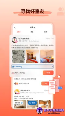 2. 智能找房高效匹配:支持按学校搜索周边房源,智能计算通勤时间,快速锁定热门公寓与高性价比房源。