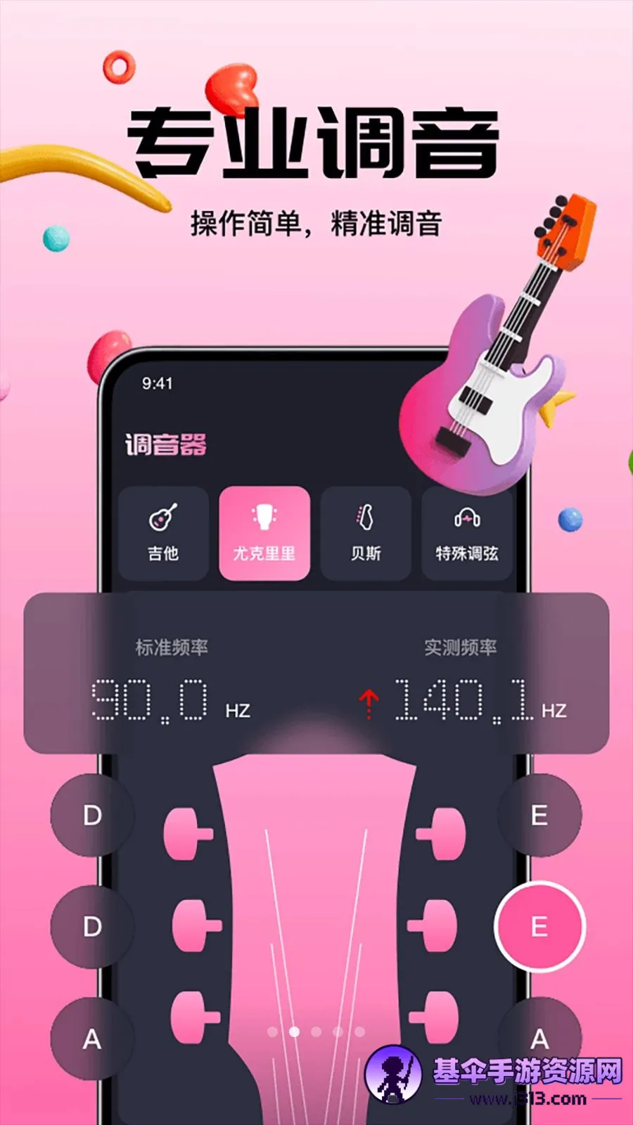 3. 调音专业:内置常见乐器调音模式,支持标准与特殊调弦,能快速将乐器调至标准音高。