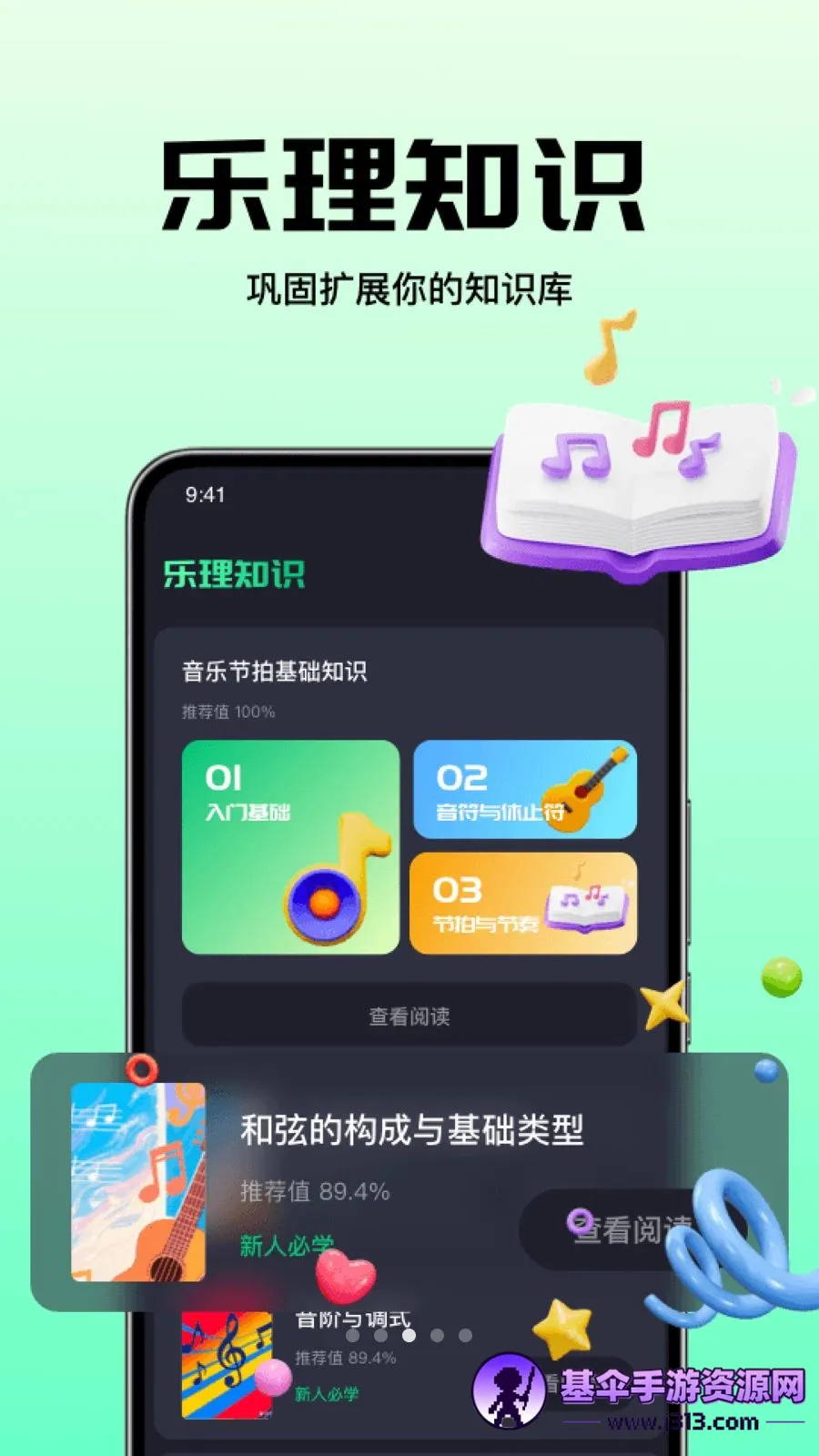 4. 乐理实用:提供音乐基础知识阅读,帮助初学者巩固理论,扩展音乐认知;还有多种音色与打击乐,可自由组合体验不同效果,辅助练习与创作,适合各类音乐学习者。