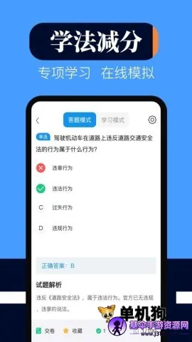 学法减分刷题宝典最新手机版是一款非常实用的软件。它专为驾驶人设计,能助力轻松掌握知识通过考试享受违章减分政策。软件内容涵盖科目一到科目四所有知识,可自由选练习模式提升理论知识。有科目选择、练习模式、视频学习、学习记录等亮点。功能上有海量知识、多样练习模式、试题解析、违章政策资讯。使用方法简单,下载打开即可练习。测评中大家都夸它实用,题库全解析详细,操作简单更新及时。强烈推荐给想学法减分的驾驶人!
