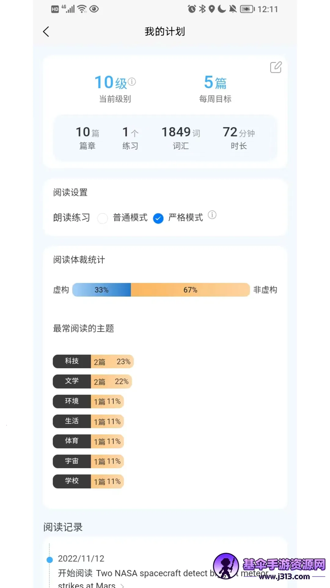4. 专业听说读练齐全,随读随练开启轻松模式,能get地道表达,即时生成专业朗读报告。