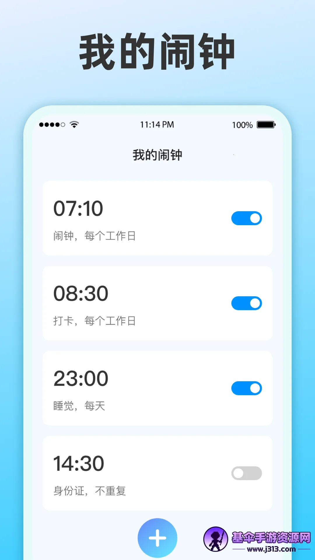 4. 有多闹钟支持功能,允许添加多个闹钟,且能单独设置每个闹钟的样式和模式,使用更灵活。