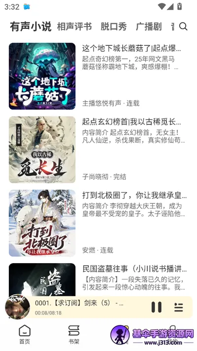 鸭趣听书是免费手机听书软件,海量正版有声内容涵盖多题材。操作界面简洁,资源库不断更新,支持收藏、定时等功能,还可切换音色,免广告干扰,给用户舒适随心的听书体验。