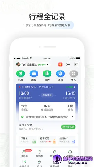 3. 行程记录全:能完整呈现航班起飞、延误、取消等实时动态,支持前序航班状态自由查询,具备机票行程单验真功能,还可一键自动提取全渠道行程。
