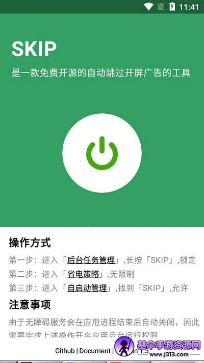 SKLP开源自动跳广告软件,是一款免费开源的安卓应用。它能利用Android无障碍服务,智能识别广告特征自动跳过,无需root手动操作。进入后台任务管理,长按SKIP锁定;进入省电策略设为无限制;进入自启动管理,允许SKIP自启。操作简单,适配多种机型。点击屏幕中央按钮可轻松进入无障碍服务设置界面开启服务。其源代码透明公开,无隐私权限请求,还能自定义跳过广告规则,节省时间,让你的使用体验更流畅,摆脱广告困扰,快来下载吧!