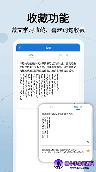 这里面有海量词汇,内置超65万条蒙汉词汇、超59万条汉蒙词汇,还有2300万海量例句。支持多种输入方式,独创摄像头查词功能,无需输入也能查单词。有网络释义功能,能轻松囊括互联网时尚热词。海量离线词库,没网络身处国外也能快捷查词。还支持语音录入翻译、文字输入翻译,界面清晰简洁,方便迅速。能进行人工翻译,提供一对一高质量服务,翻译质量保证且内容保密。有收藏功能,方便学蒙语。每日一言收录大量传统蒙古谚语。还有互助社区可提问,在线听书涵盖各类图书专题。总之,用它交流、办公、旅游都特方便,赶紧试试吧!