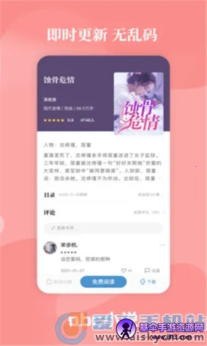 它的功能超强大,加载速度快,翻页流畅,还能随意调整字体大小和背景颜色,性能稳定。智能推荐系统会根据你的阅读喜好,每天给你推荐适合的小说,从此告别书荒。而且能自动跟踪最新章节,确保你及时读到最新内容。支持在线阅读,智能预读技术超流畅还省流量,更有无限量下载,随时随地离线阅读。另外还有书单推荐、一键更新等贴心功能,让追书变得轻松又愉快。所有小说免费,无广告弹窗打扰,给你最舒适的阅读享受,赶紧来下载体验吧!