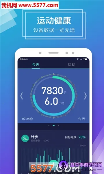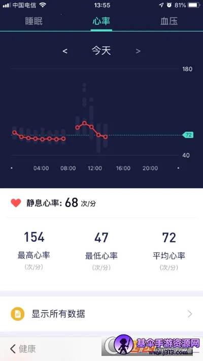 2. 数据记录全面,涵盖运动步数、睡眠情况、心率、血压、体重等,还能展示24小时中每个活动时间的运动量以及每周每月的总运动量和趋势统计图表。