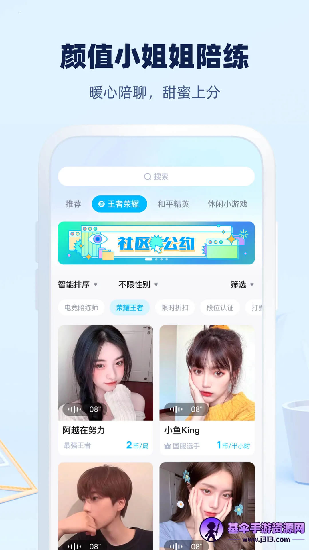 想在王者里轻松上分,又愁找不到厉害的队友?“王者大神陪练”类软件来帮您!这类软件里汇聚了超多王者大神。不管您啥水平,都能找到合适的陪练。大神们能陪您一起开黑,24小时随时约玩,在线1v1连麦,超欢乐。他们还能专业指导,带您躺赢,快速上分。有了他们的一对一指导,您能快速掌握游戏技巧,晋升大神。而且操作特方便,随时在线一键下单,还能查看大神战绩。能让您轻松了解不同的陪练服务,感受独特陪玩乐趣,告别游戏中的孤单和无助,享受游戏的无限魅力,在王者世界里尽情驰骋,快来体验吧!