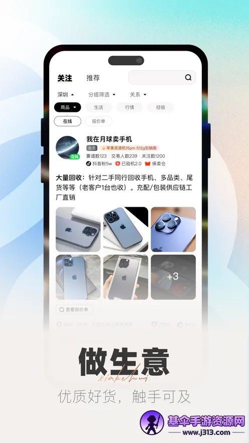 侠客汇是转转旗下为二手B2B社交贸易定制的移动应用。它解决了二手交易诸多痛点,为上下游B端客户带来便利。上游商家能借此高效散货,下游商家可获优质货源,缩短流通周期,提升交易效率。