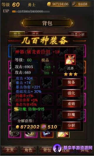 丰富养成系统,可强化装备、升级宠物,还有特殊装备和翅膀能升级,打造最强神器装备。