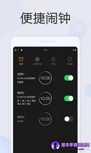2. 便捷功能体验:是功能强大且便捷好用的手机闹钟工具,支持桌面控件,有自动延时闹钟功能,打盹后能设置延时响铃时间和报警音量,无论手机音量设置如何都能照常响铃。