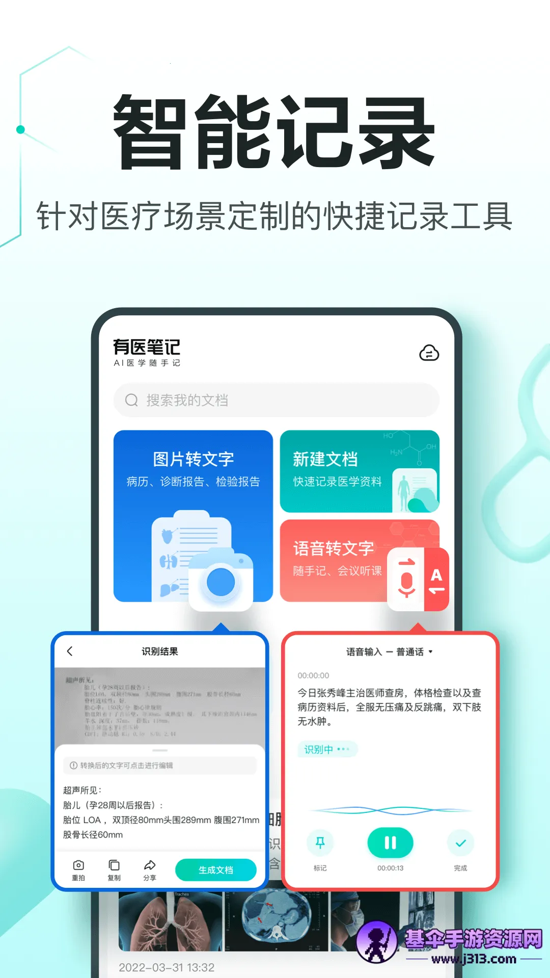 有医笔记是一款专门为医疗行业人员打造的手机笔记软件。它功能强大,能解决不少实际问题。比如在开会或跟随导师学习时,若无法及时记录笔记,可通过语音转换文字的方式轻松搞定,而且它支持语音、文字等多种记录方式,图片语音转文字功能也不在话下,记录超简单快速。它的图片转文字功能依托精准OCR能力,有五种扫描模式,能快速准确地把病历、检查报告等图片形式的医疗材料转化为文字。语音转文字则基于医学语料库开发,在会议、课程等医学场景中,能快速识别和转换医疗术语。还有多端同步的文档管理功能,简单易用,随时随地可查看私人云笔记。10G超大免费存储空间,能满足大家存储病历档案、影像资料等需求。总之,有医笔记为医疗工作者提供了便捷高效的笔记记录和资料整理方式。