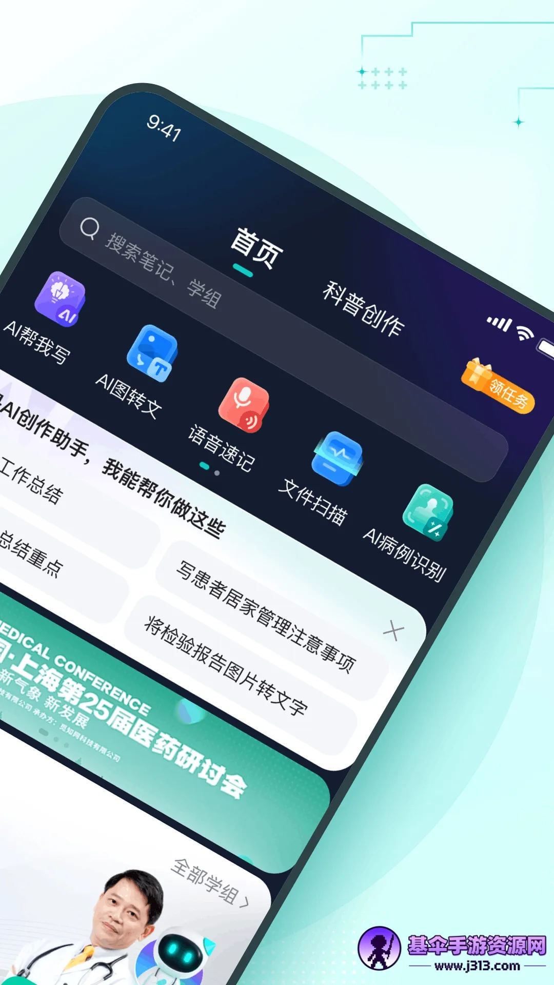 智能记录:针对医疗场景定制的快捷记录工具,病历识别、检测报告识别、工作沟通语音转文字、医学会议语音速记等功能一应俱全,满足不同医疗场景需求。