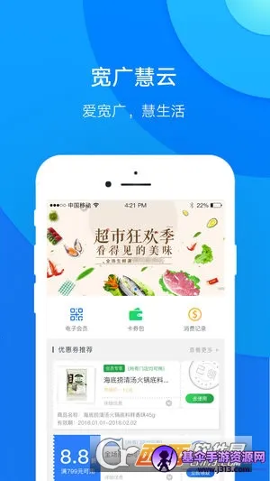 宽广慧云是河北省承德市宽广集团推出的一款方便超市顾客的功能型APP。它充分结合宽广集团实体超市优势,为用户提供涵盖优惠券、会员应用、电子海报等多维度自助服务体验。