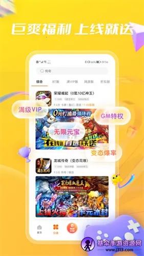 bt游戏盒子安卓版是手游玩家实用工具,简化游戏下载与礼包领取。有多种版本游戏,界面简洁,资源经审核,绿色安全。还能积分换礼、签到及做任务赚积分,提供充值优惠,与多平台合作,让玩家畅玩游戏。