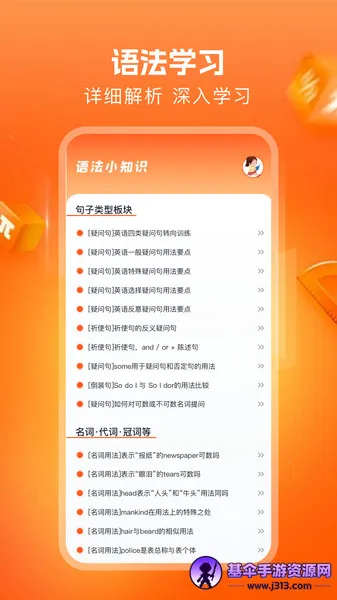 4、支持语法小知识的学习,各种句子类型筛选,高效自学平台。