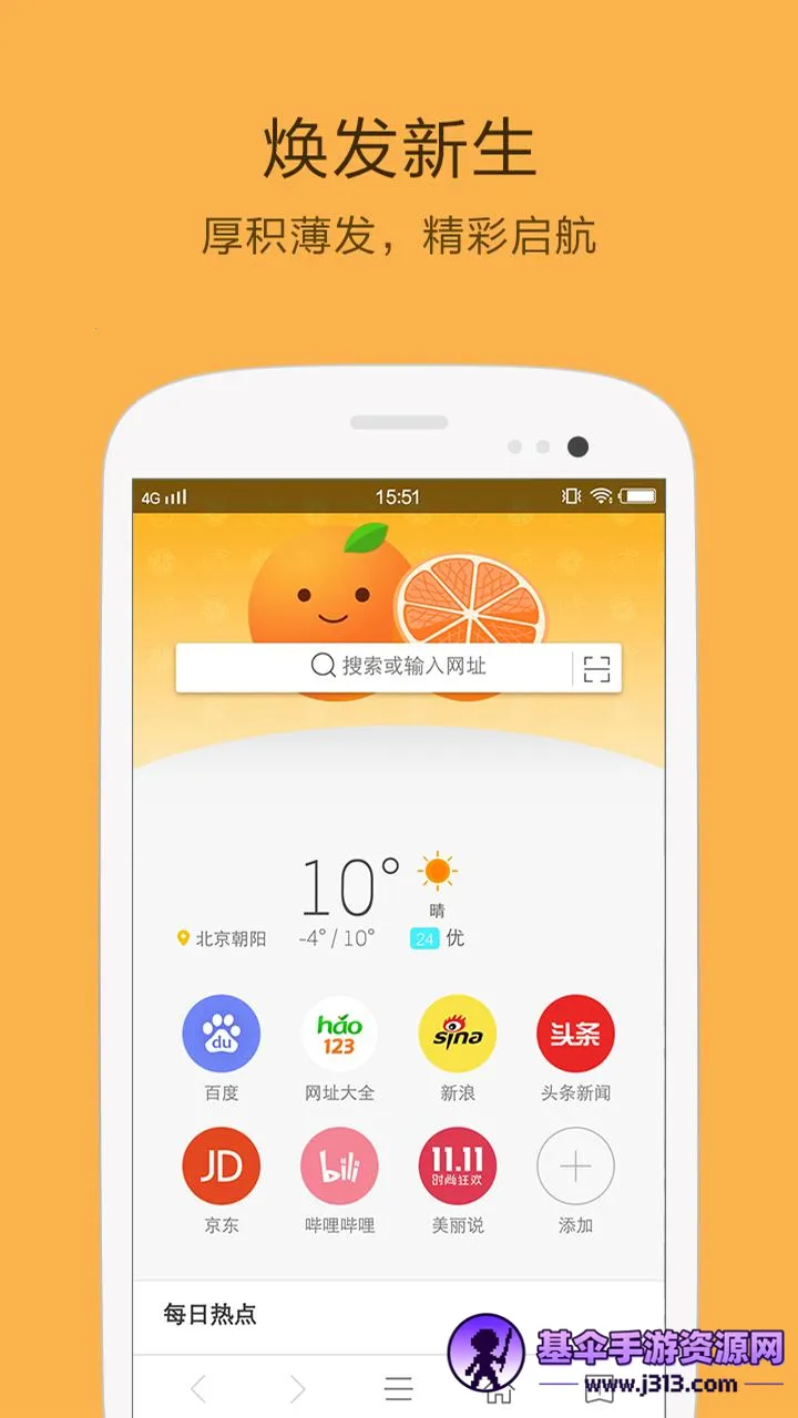 桔子浏览器是一款超棒的手机浏览器。它功能强大,能自由添加常用网页标签,浏览更轻松;可开启多个浏览窗口,浏览更多内容;扫描功能能扫描二维码搜索网页;还能自定义添加涂鸦,选择喜欢的主题皮肤,带来超赞上网体验。它体积小巧,仅2.5M大小,适合主流安卓机型。速度超快,响应迅速,上网流畅。流量优化技术超厉害,能节省更多流量。页面设计极简,方便随时打开网页,清晰查看内容。不仅能满足各种上网需求,让手机上网更容易,还能帮你构建完善的互联网需求,随时查询更多内容,浏览更快。而且没有广告,能营造极简体验,一键轻松启动,设置方便,真的很不错,赶紧下载试试吧!