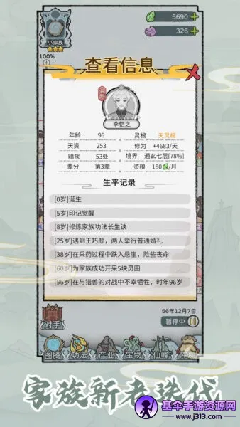 3. 随机事件与成长:游戏内随机事件多,如偶遇仙人或家族内斗。家族成员有生命周期,需精心规划传承。成员外出历练,选择关乎个人与家族命运。