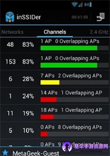 inSSIDer是款超棒的WIFI检测软件。它能帮你检测分析附近所有WIFI热点,查看热点基本信息,支持多频段搜索。通过它搜索无线热点,能看到MAC地址、网络名称、信号强度、信道、加密方式、传输速率等全面信息。还能查看各时间段热点信号强度和稳定性,以及2.4GHz和5GHz频段信道使用情况,帮你选信号强、网络稳、信道不拥挤的最佳热点。它能避免相邻网络WiFi干扰,验证网络WiFi覆盖范围,确定配置问题,用Wi-Spy查看无线干扰。有了inSSIDer,轻松就能选出优质无线网络,解决WiFi相关困扰,让上网更畅快,赶快试试吧。