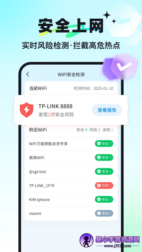 很多人想知道万能钥匙能不能破解wifi密码。其实万能钥匙官方免费版APP是一款超实用的手机WIFI网络工具。它能覆盖全国海量热点,自动优选高速网络,追剧、游戏、刷视频都流畅无卡顿。有碰一碰连网功能,找到身边NFC标签,手机碰一下就能连网。还能共享热点信息,自动搜索附近可用wifi信号,点击就能轻松上网。它通过国家信息安全等级保护三级认证,安全可靠。基于云计算的Wi-fi热点数据库,内置超10000条热点数据遍布全国。有一键省电功能,屏幕锁屏或无网络传输时智能关闭Wi-Fi。软件界面简洁,操作流畅,轻松上手,能满足用户全方位网络WIFI管理需求,保障上网环境安全稳定,让你便捷享受网络,需要的话就来本站免费下载吧。