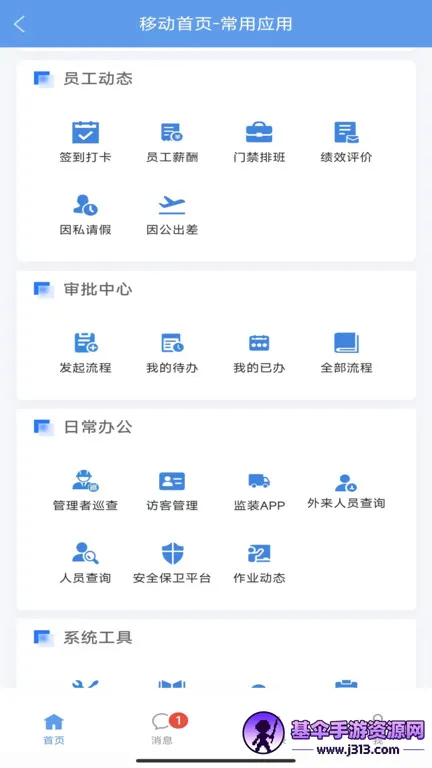 3. 实现业务流程智能卡控,为复杂业务提供高效解决方案,解决信息安全、数据孤岛等痛点,干部职工可线上刷脸打卡、处理审批流程等。