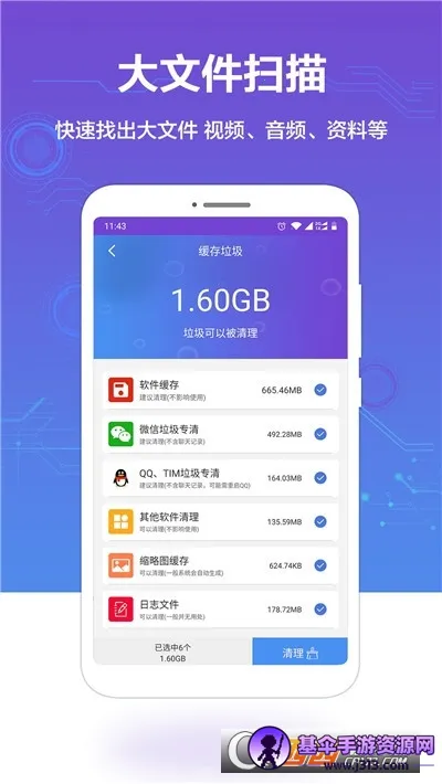 1. 清理功能强大,能轻松选择并清理各种类型的缓存和垃圾文件,彻底清理应用程序剩余文件和下载文件,释放不同内存空间,操作简单易用。