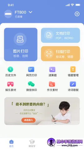 2. 丰富学习资源:为有孩子的家庭提供丰富学习材料和 K12 试卷题库,在家就能轻松打印,方便孩子学习。