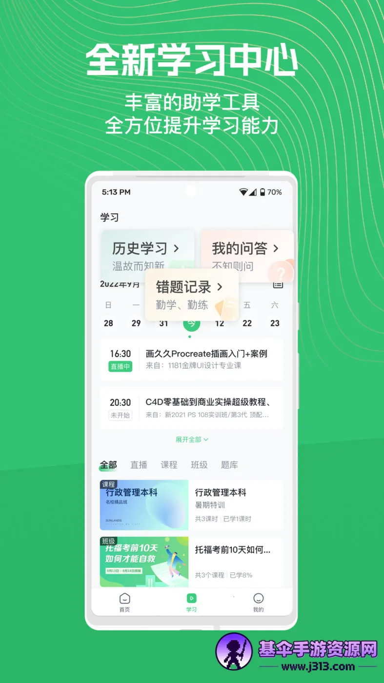 知享学堂是一款主打线上视频课程的学习软件,让学生们摆脱原本线下教室的传统授课模式,只需要一部手机,就可以开始上课学习,帮助学生们充分利用碎片化的课余时间补充知识点,提高学习成绩更轻松。精心挑选C英语电网等上千个领域的视频课程内容,还有辅导老师们线上为学生们答疑解惑,课上不懂的知识点随时都能向老师询问,知识点理解的更透彻。