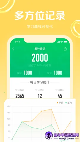 3. 学习数据全程记录:告别背砖头红宝书的时代,记录学习成果,结合艾宾浩斯记忆曲线,帮你建立每日复习任务,智能学习,花更少时间冲击高分。