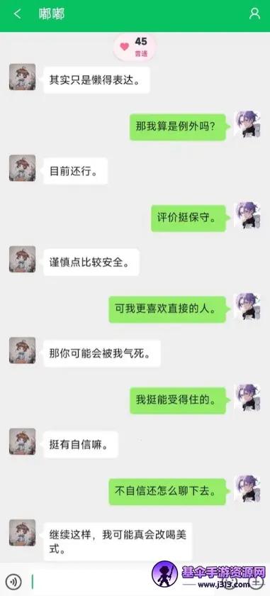 游戏特色鲜明,角色是独立AI个体,性格各异,聊天反馈真实。对白融入网络热梗,趣味十足。玩法类似真实聊天,还能解锁成就与隐藏剧情。亮点众多,有丰富剧情分支与结局,能提升社交能力,涵盖多样社交场景。而且幽默轻松,高自由度模拟生活。总体而言,如果你想体验别样恋爱模拟,它值得一试。