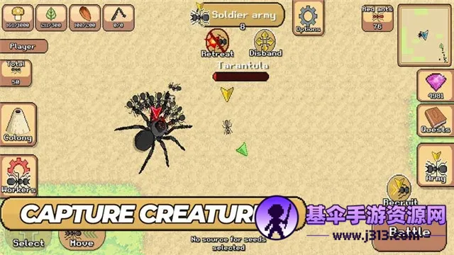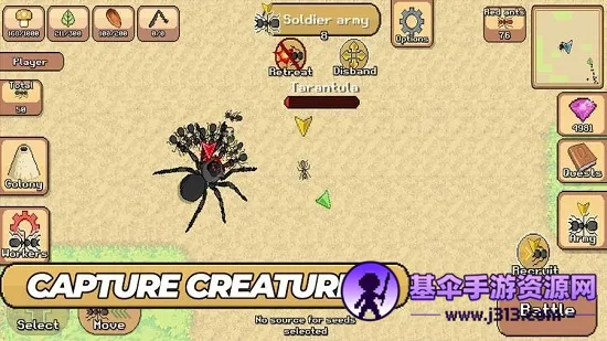 3、多样蚂蚁种类:包含工蚁、士兵蚂蚁、酸蚂蚁、火蚁等多种,各有独特属性和技能,可按需选择培养。