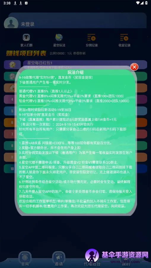 星空赚动app是一款手机赚钱软件。它功能丰富,有各种各样的推广任务,能让你轻松从广泛任务中挑选。获取收益方式简单,完成推广、签到、玩游戏等都能赚钱,还有额外奖励和分红机制。软件环境干净无广告垃圾信息,奖励任务及时更新。它能解决大家利用闲暇时间赚零花钱的问题,不管你是学生、上班族还是家庭主妇都适用。操作很方便,登录后接受任务,按提示自动跳转应用市场下载对应app完成任务就行,完成任务收益能直接到账。而且注册登录简单,每天大量任务可选,个人账号管理方便,还有强大搜索功能,能让你不错过任何赚钱机会。总之,这是一款可靠且便利的赚钱软件,想赚零花钱的快来试试。