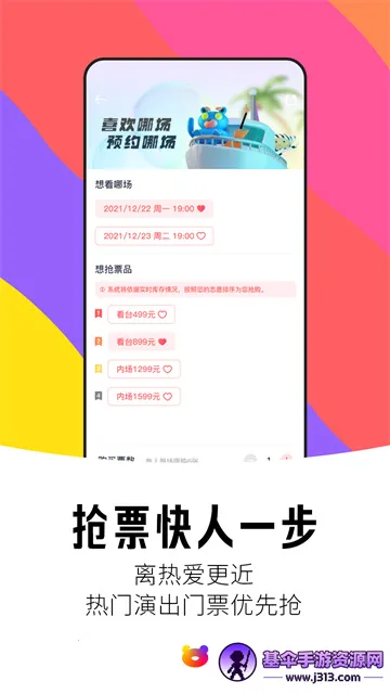 纷玩岛app可是演唱会爱好者的首选抢票软件。它能让你轻松抢到心仪演唱会门票,还能记录分享现场精彩瞬间,购买官方正品周边。这里票务购买超方便,能浏览各类演出票务信息,一键抢票超快速。支持票务预约与候补,增加购票成功率,售罄演出也能有序候补。演出资讯更新及时,详情超全。用户还能在app内互动交流,分享心得体验。而且界面简洁操作流畅,实名认证杜绝黄牛,给你超棒的购票体验,赶紧来下载试试吧!