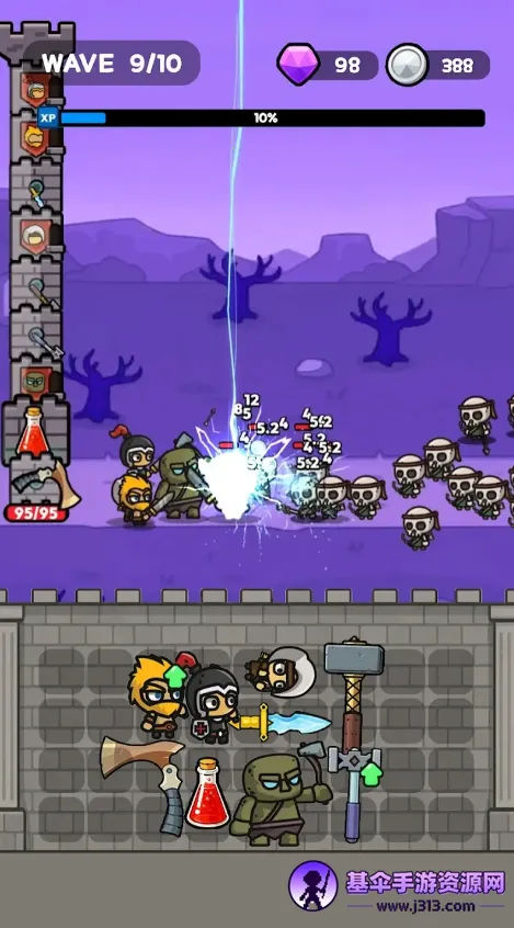 2. 丰富成长机制:通关关卡获大量资源,用于提升英雄属性和城堡建筑。合理分配资源与选择策略,逐步强化战斗力,抵御更强敌人。