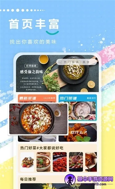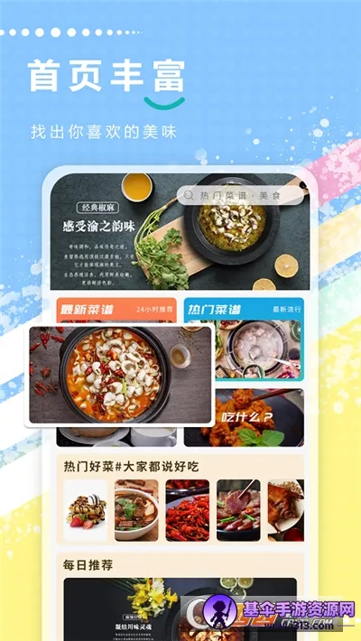 1. 一键快速搜索美食菜谱!强大的收藏功能,菜谱就收藏起来。每道菜为你提供健康提示,菜谱大全让你健康每一天。