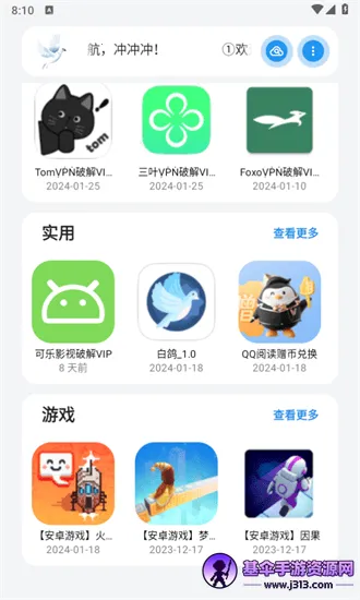 1、进入白鸽软件库后,首页会展示大量可免费下载的应用和游戏,用户可以直接浏览选择。