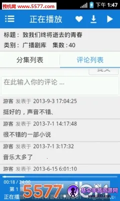 听世界听书曾是一款超棒的有声小说阅读软件。它功能强大,资源超丰富,涵盖各类有声读物。有海量热门网络小说、畅销书籍,还有有声教材、广播剧、相声小品等。其智能记忆播放能精准记录进度,下次接着听超方便。支持批量下载,没网络也能畅听。操作简单,打开 app 点击书城,能按分类找想看的小说,添加到书架双击就可听书。还能在评论标签发表收听感受。它能解决大家想随时听书的需求,通勤路上、睡前都能享受。而且有多种听书模式,可调节语速,打造个性化阅读环境。支持语音搜索,动动嘴就能找书。用户能在社区分享心得、结交好友。虽现在已停播,但之前给众多有声书爱好者带来了很棒的听书体验。