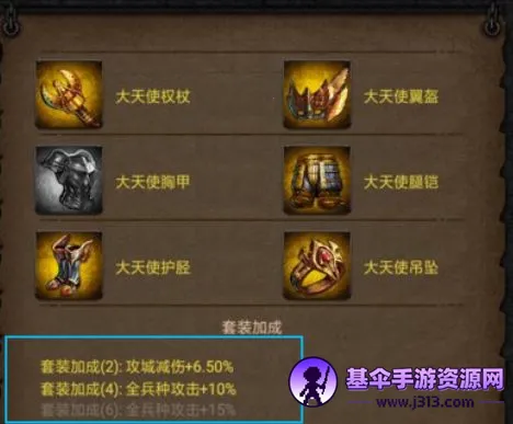 5件金色大天使,没有做任何强化,依然可以激活套装加成(4)。如果身上凑齐6件金色大天使,则可以激活最下面-套装加成(6)对应的属性。