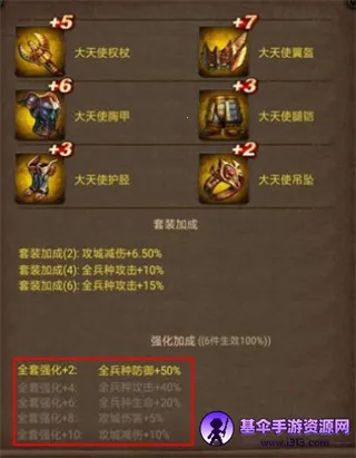 全身6件装备强化+6,则激活全套强化+6,以此类推。