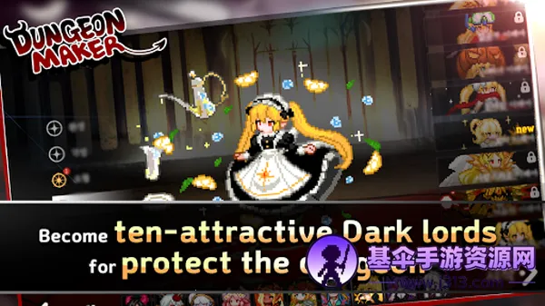 地牢制造者中文版支持简体中文,像素画风,以地宫建造对抗勇者为玩法。有多样模式关卡,可招募角色布阵,设置多种陷阱怪兽。每天有新命运卡牌,还有精彩剧情解锁不同结局,另有怪物流攻略及更新日志等内容。